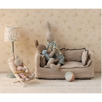 Perfectly sized for Maileg's micro rabbits and bunnies, the Maileg Babysitter Micro in off-white is a charming and functional addition to any miniature nursery. Featuring a soft floral pink fabric seat with delicate golden straps and a sturdy metal frame, this babysitter offers both comfort and style for the tiniest members of the Maileg family. Ideal for imaginative play, it’s a lovely accessory that blends vintage charm with sweet practicality. Measures H9cm x W8cm.