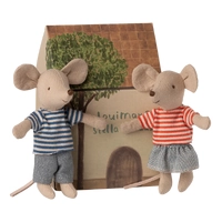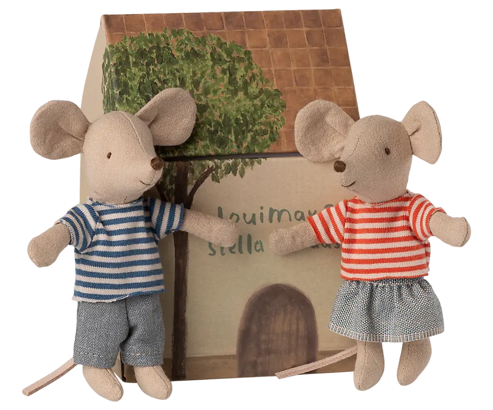 Meet Louimax and Stella, the lovable Little Brother and Sister duo from Maileg. Dressed in cheerful stripes and soft cotton separates, these sweet mice are always ready for an adventure. Whether they're sailing paper boats, relaxing in their SuitCasa or simply enjoying story time, their playful personalities inspire endless imaginative play.