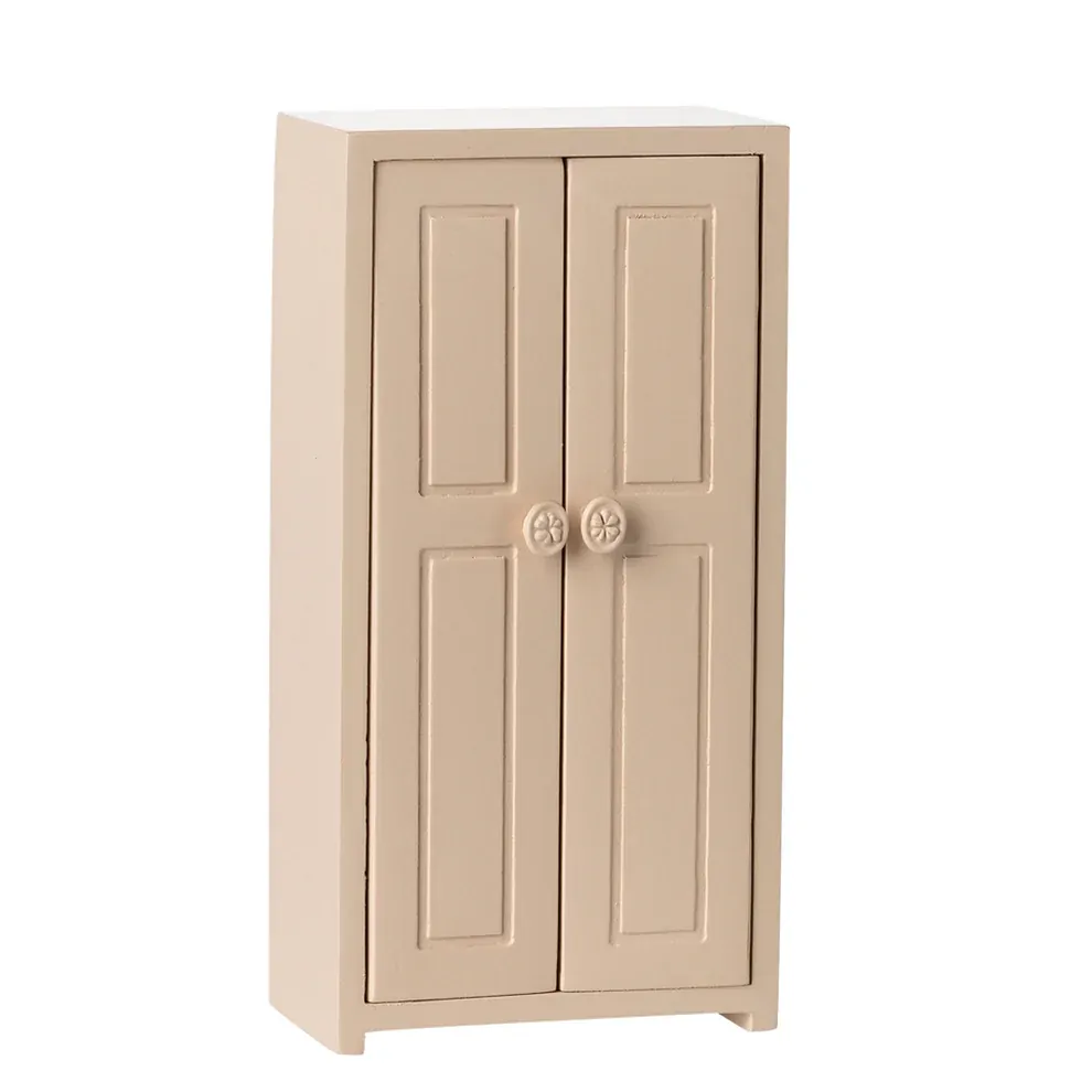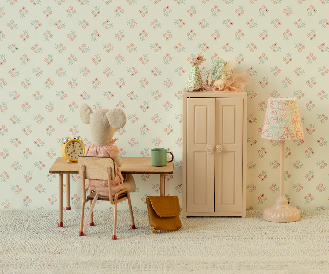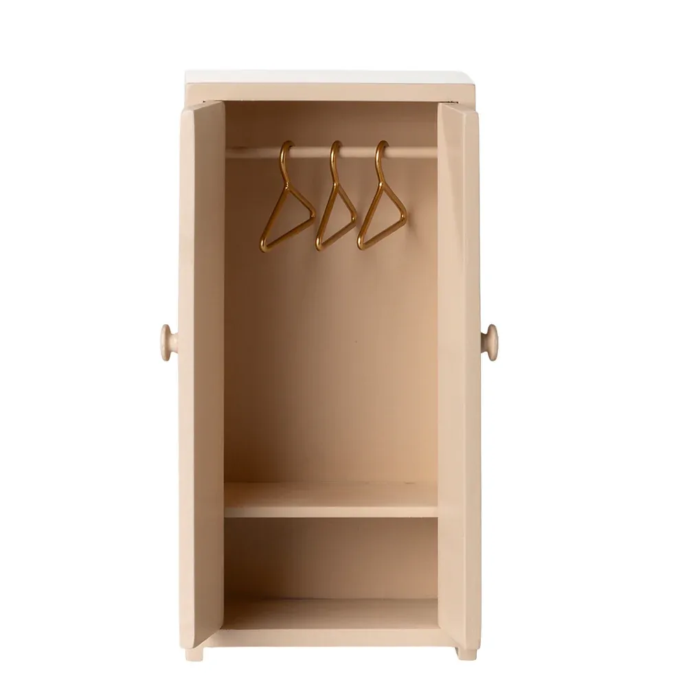 The Maileg Closet Mouse Light Rose is a sweet and functional addition to any miniature world. Made from sturdy wood and painted in a gentle rose shade, it features double doors, a hanging rail with three metal hangers and a lower shelf for neatly folded outfits. Designed to fit Maileg mice perfectly, this wardrobe encourages imaginative play while keeping tiny clothing beautifully organised. A charming piece that adds warmth and character to any Maileg display. Measures H14cm x L7cm x W4cm.
