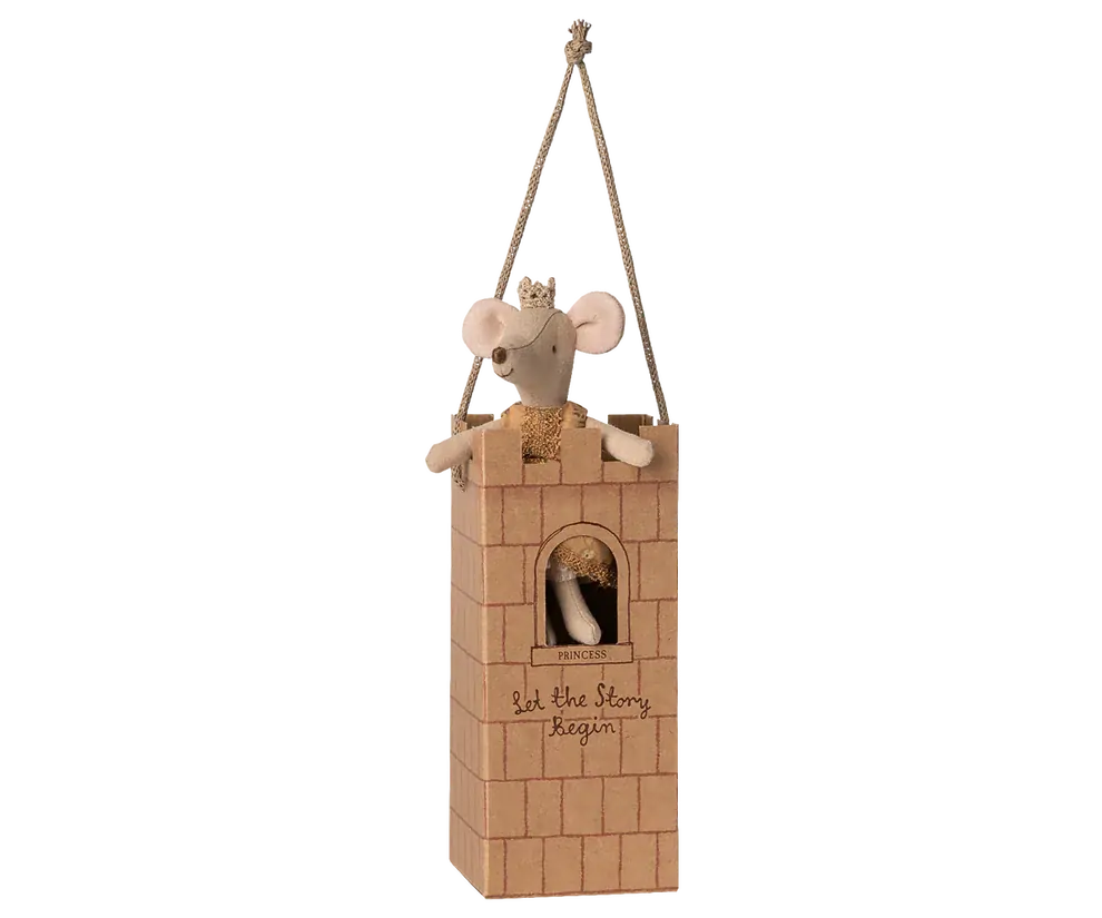 Let your stories sparkle with Maileg’s Big Sister Princess Mouse, the belle of every fairytale. Dressed in a golden gown with delicate lace trim and a glittering crown, she’s ready for royal festivities and magical adventures. Her graceful presence and classic Maileg detailing make her a perfect companion for imaginative play or a treasured keepsake. Whether ruling in the Maileg Castle or twirling at a ball, this princess brings timeless charm to any child’s collection. Measures 13cm in length. Includes castle themed gift bag.