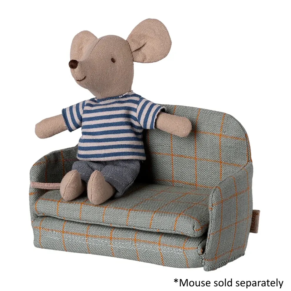 A charming piece for any Maileg home, the Sofa Bed Mouse Checker is as functional as it is stylish. With a soft green checker fabric and classic Scandinavian design, it provides the perfect place for your mice friends to relax by day and sleep by night. Easily foldable into a cosy bed, this miniature sofa adds a touch of warmth and versatility to your miniature world. Designed to fit perfectly inside mouse houses and the SuitCasa portable house. Measures (when folded) W11cm x H8cm x D5cm.