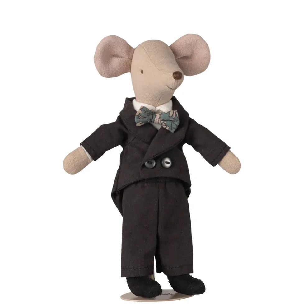 The Maileg Wedding Mice Mum and Dad set is a beautifully detailed keepsake designed to celebrate love and storytelling. Dressed in classic wedding attire, the mum mouse wears a lace gown and veil, while the dad mouse is styled in a smart suit with bow tie. Presented in a decorative box with Maileg print, this set is made from quality cotton and linen fabrics.