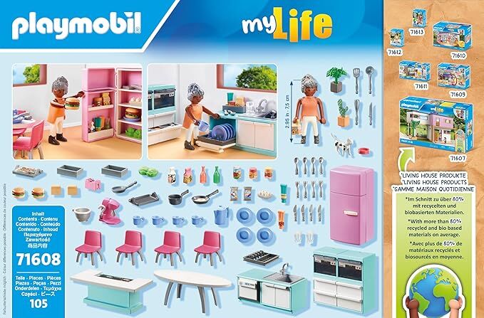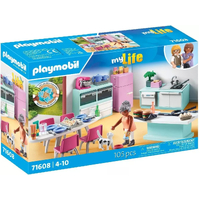 Embark on big playtime fun with the PLAYMOBIL My Life Kitchen with Dining Place. This sustainable playset includes a PLAYMOBIL figure, a fully equipped kitchen, and many realistic accessories.