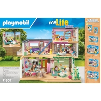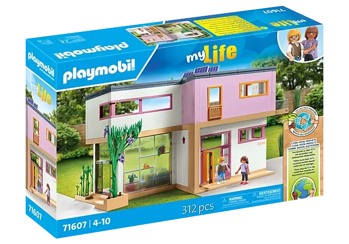 In the spacious house with conservatory, living dreams come true! The light-filled house in Bauhaus style offers plenty of space for playing and individual furnishing. The living room is the central space of the large house and comes fully equipped. With additional room sets from the Living House play world, the large living house can be complemented and redesigned at any time. A solar panel on the roof ensures environmentally friendly energy supply. The house can be expanded and redesigned with four room sets, allowing for endless creativity. With happy stickers for personalised decorating of the building and interior. All sets in the PLAYMOBIL Living House play world consist of over 80% recycled and bio-based materials on average.